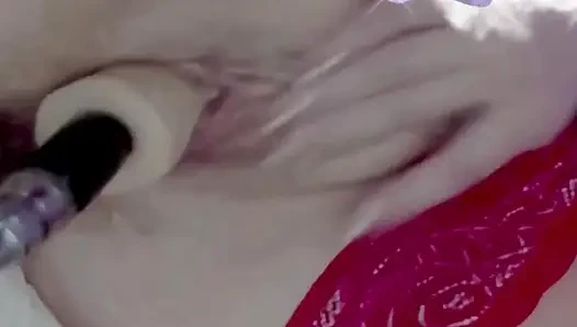 Vagina yang sangat basah close-up, vibrator pada klitoris, mesin seks vagina fuck